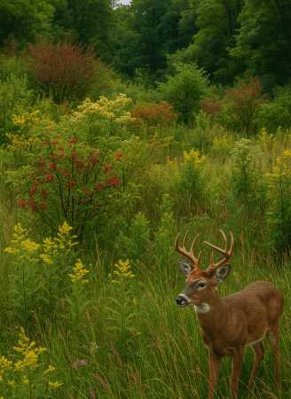 Planting trees, shrubs, and grasses to provide food and cover for deer and other wildlife.